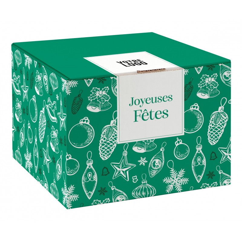 • Box personnalisée fêtes fond vert (24 x 24 x 18 cm)