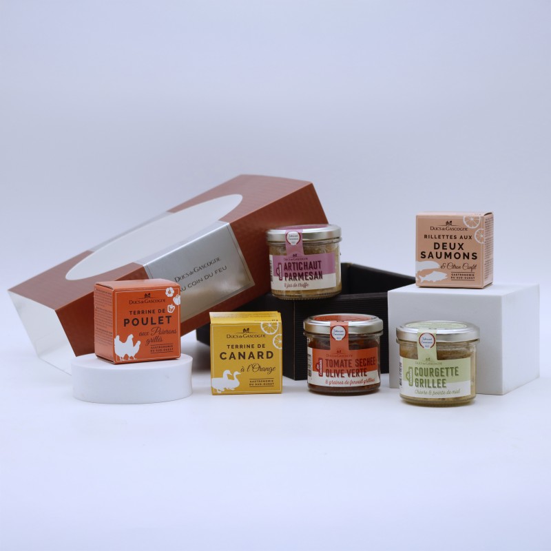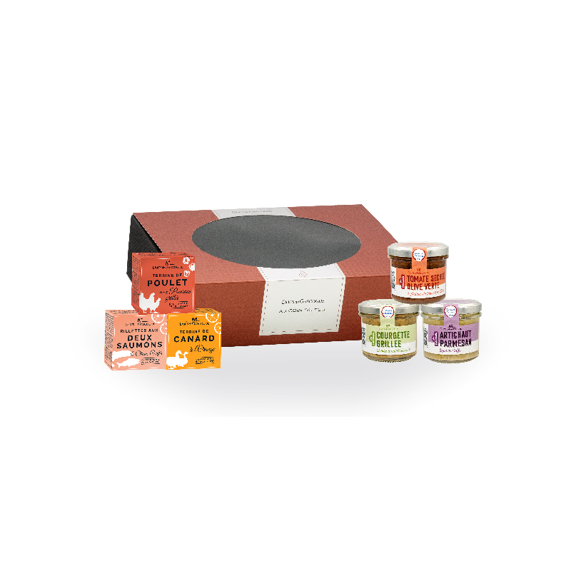 Parure de canard origine UE (31%), foie de poulet, viande de canard origine France (21%), ŒUF, zeste d'orange origine UE (4%), sel, gélatine BOVINE, poivre.